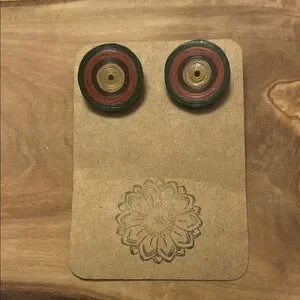 Earrings Handcrafted Round Multicolor Wooden Earrings, New