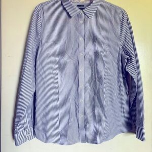 Talbots 16P blouse /Shirt long sleeve button-up wrinkle resistant gray/white