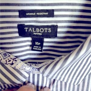Talbots petitesp size 16P long sleeve button-up blouse/shirt. Wrinkle resistant fabric 96% cotton 4% spandex giving some stretch. Front & back darts for a nice fit.