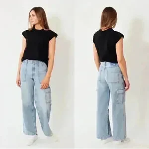 Mother Denim The Spinner Cargo Nerdy Light Wash Jeans Button Fly Size 29 NWT