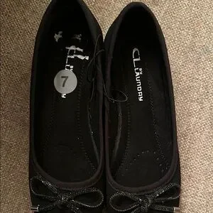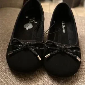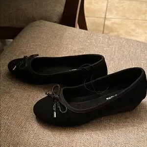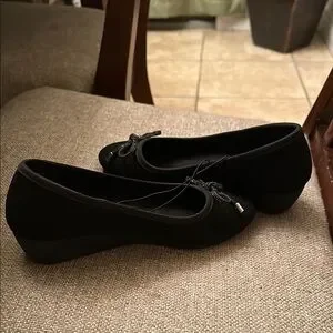 These classic black ballet wedge from Chinese Laundry feature a charming bow detail and a comfortable flat sole, making them perfect for everyday wear. Crafted from a suede-like material, they offer a versatile style that pairs effortlessly with various outfits. Enjoy the blend of elegance and comfort in these timeless shoes. NWT Please ask questions prior to purchase. TY