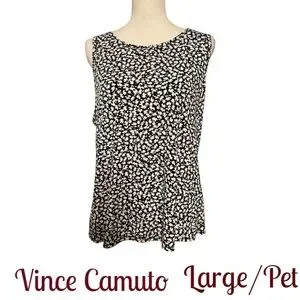 ❤️Vince Camuto Black/White Print Top/Shell Back Detail SZ: LARGE/PETITE #R