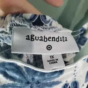 Aquabendita X Target Women's Coral Tile Print Button-Front Tank Top Sizes 1X in Turquoise & Cream
