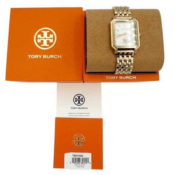 Tory Burch Robinson Gold Stainless Steele Watch Bracelet White Rectangular Dial