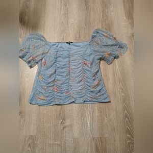 Willow Young Contemporary Blue Lined Puff Short Sleeve Top Size 2X