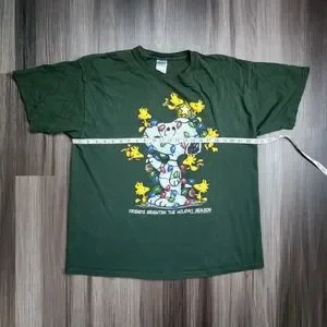 Vtg Snoopy Peanuts Christmas Lights Holiday Woodstock Mens Size XL Green T-Shirt