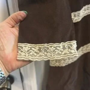 This elegant brown dress features delicate lace trim, perfect for any occasion. Its sophisticated design offers a flattering fit and timeless style.