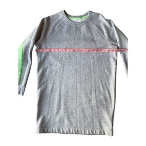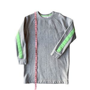 Stylish mini dress by Athleta. Features gray fabric with neon green accents. Comfortable and chic.