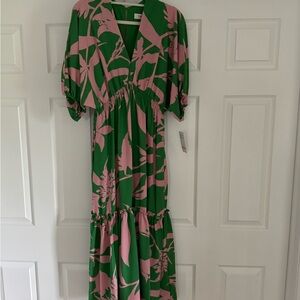 Taylor Green and Pink Wrap Sundress with Dolman Sleeves