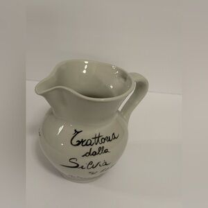 Italian Pottery Vase Pitcher White w/ Hand Painted Grape Design Signed | Vintage