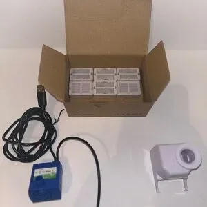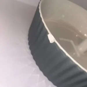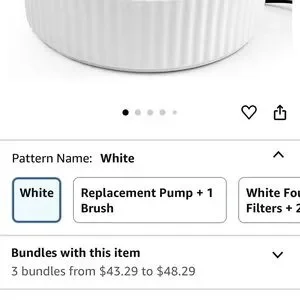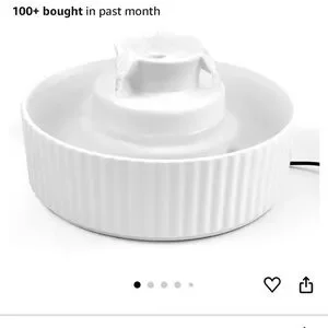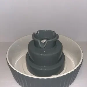Elegant gray and white ceramic pet fountain. Perfect for home decor. This sleek, easy to clean design offers whisper quiet flowing water that your pet is sure to love. This fountain comes with six replacement charcoal water filters. Additional filters can be purchased online including the needed additional white mesh filter (not included, please see original Amazon listing for more details). Small cosmetic chip on the side of the bowl. Used, good condition.