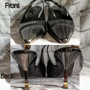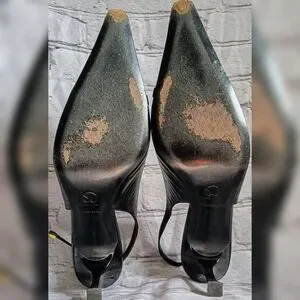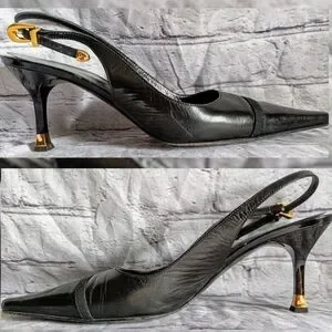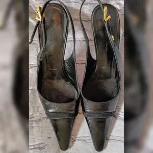 Elegant black slingback heels by St. John. Perfect for any occasion with a sleek design and comfortable fit. Here I have a beautiful Low Heel kitten heel leather "St. John" with a back adjustable ankle strap. This has a Stiletto style to it for looks, but with the comfort of a Kitten style heel for everyday use while looking sharp and fashionable. Please Refer to ALL PHOTOS for any wear involved including minor wear as these have some wear from Normal usage. The Heel is roughly 3".