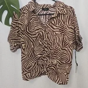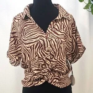 Milk & Honey Zebra Print Button-Up Top Size XL