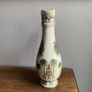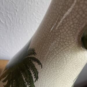 Vintage 2001 Ceramic crackle glaze Vase with Palm Trees 14- 1/2" tall beautiful