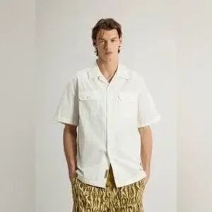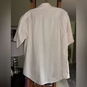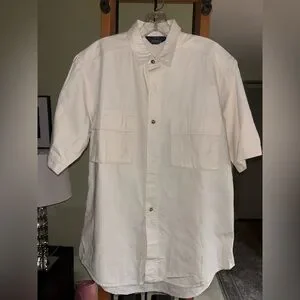 Woolrich-Dyed Pure Cotton Pima Ripstop Short Sleeve Cream Button Up Shirt Size L