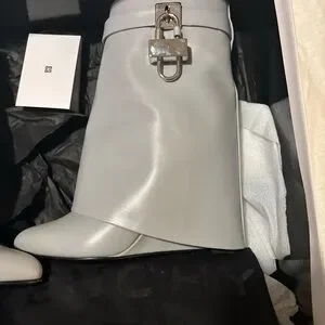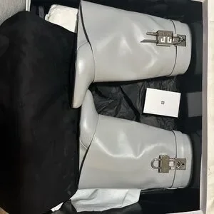 Stylish Gray Leather Boots with Buckle