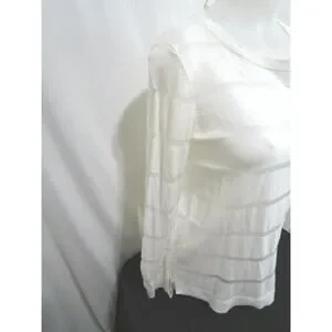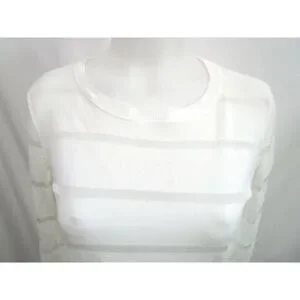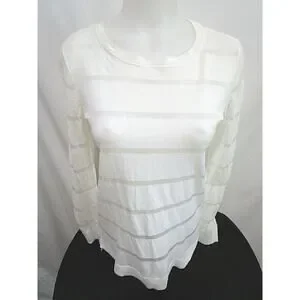 Vince Camuto Ivory Sheer Striped Long Sleeve Round Neck Light Sweater Petite S
