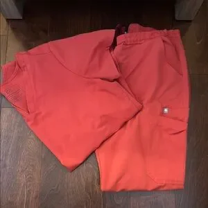 Comfortable orange scrub set by FIGS. Includes top and pants. Size medium