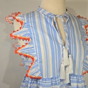 Marie Oliver Becca Blue Striped Sleeveless Tassel Ruffle Top Small