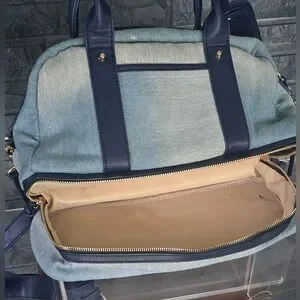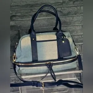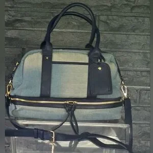 Sole Society Jean Design Crossbody Weekender Zip Bottom Compartment 4 Leg Bottom