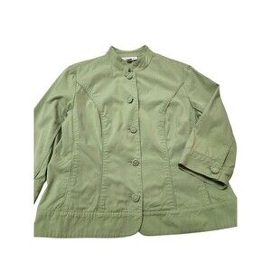 Coldwater Creek Jacket Women's 14 Lime Green 3/4 Sleeves Pockets Cotton I9.1