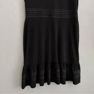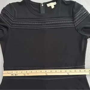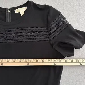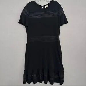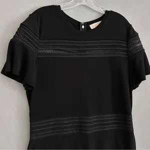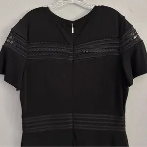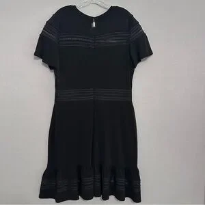 Michael Kors Black A-Line Dress Short Sleeve Ruffle Hem Crew Neck Mesh Insets XL