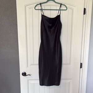 This elegant light weight black slip dress is perfect for any occasion. Its sleek design offers a timeless look with adjustable straps. Ideal for evening wear or a night out.
