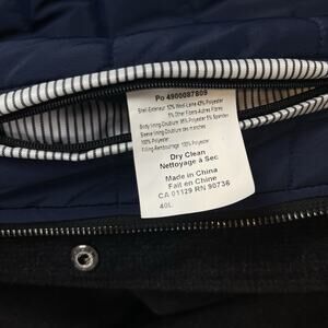 Extra Details: Zip and snap button closure, insulated inside and in sleeves, four front popper pockets, two internal pockets (one zipped). Will keep you warm. Wool/Poly mix.
