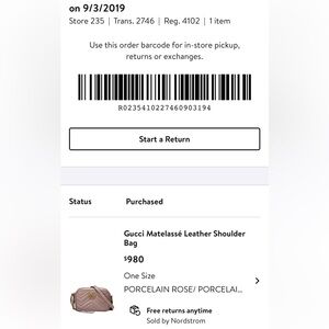 Beautiful quilted leather, zip top closure, and gold toned hardware.