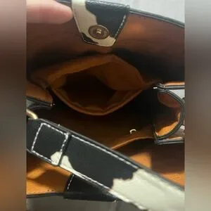 This larger sized handbag or crossbody purse - removable straps and Cow print ๐ handle - 11 x 10 1/2 and 4 in wide