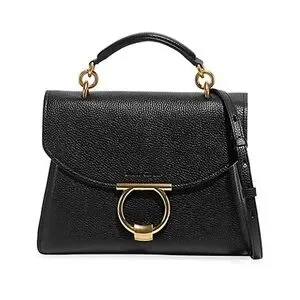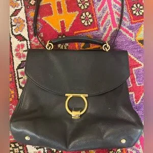 Ferragamo Margot pebbled black leather bag. Top handle or cross body strap.