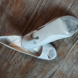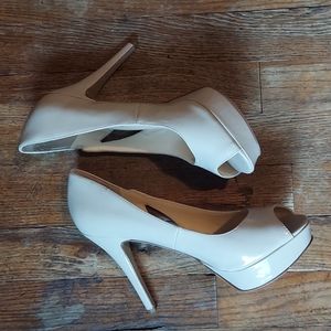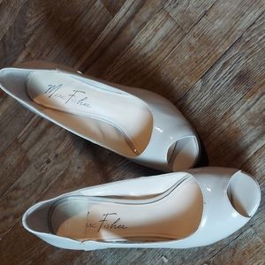 Elevate your style with these sophisticated tan peep-toe heels from Marc Fisher. Featuring a classic pump silhouette and a medium stiletto heel, these shoes are perfect for formal occasions. The clean lines and elegant design make them a versatile addition to any wardrobe.