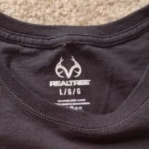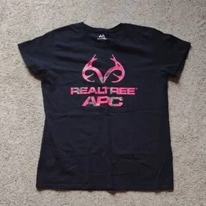 Black t-shirt featuring a pink Realtree logo. Casual and stylish. Size large, women's fit. In good condition!