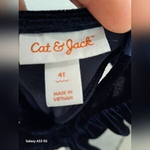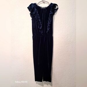 Cat & Jack Navy Blue Ruffled Velvet Jumpsuit for Toddler Girls Age 4