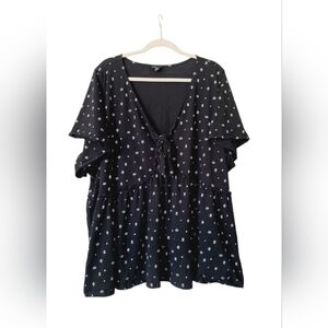 Torrid Black and White Flutter Sleeve Blouse with Tie Front Size 5