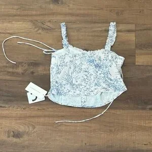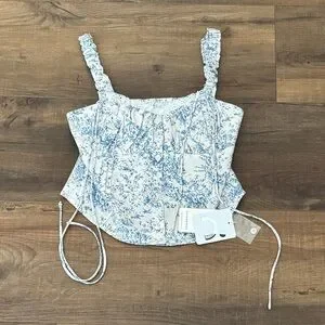 This top is so cute! If it fit me, I would buy it!! This hyper feminine corset like top adorns cute strap bows with cute button details. The lace detail and pattern are perfectly adorable!