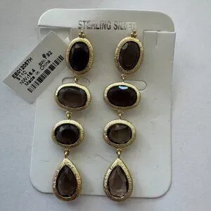 Smoky Quartz Drop Long Earrings | Gold over Sterling Silver | NWT