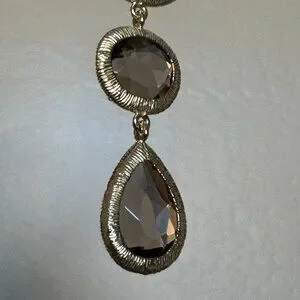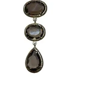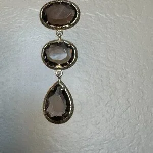 These are a beautiful lab created Smoky Quartz in a lovely, cool taupe stones. There are 4 stones in oval and tear shapes to create a nice geometric mix of interest. Dropping 3" from the post, these have a lovely dangle.