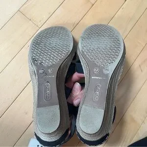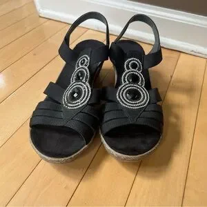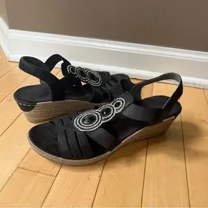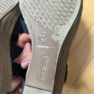 Rieker Wedge Sandals Womens Size 37 EU Shoes Black Slingback Espadrille Leather