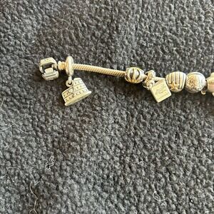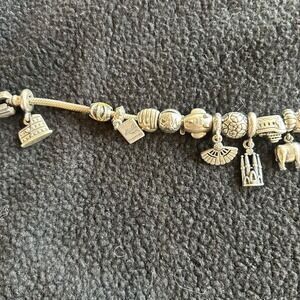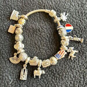 Pandora 20 Charm 925 Sterling Travel Theme USA Ship Airplane 8Hanging 8"Bracelet