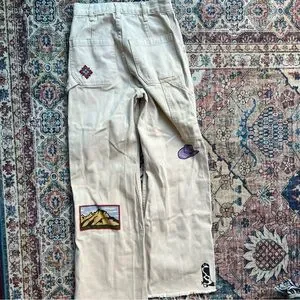 PacSun Wyoming & Western Graphic wide leg cream carpenter denim pants, size 23