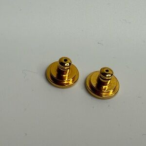 Perfect for any occasion, these earrings are a must-have for any jewelry collection. Sculptural logos crown the glossy cabochons rising from gilded stud earrings.