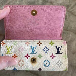 Rare and iconic! This is a limited edition Louis Vuitton 4 Key Holder from the legendary Takashi Murakami collaboration in the White Multicolore Monogram canvas. A playful yet luxurious accessory featuring 33 vibrant colors on a white coated canvas base, designed exclusively for Louis Vuitton by Murakami.