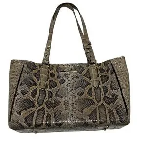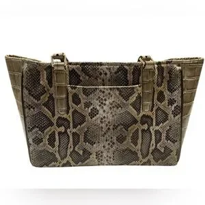 Brahmin Priscilla Satchel Natural Leighton Handbag Purse Snakeskin Turtle Taupe
