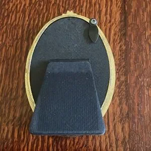 Vintage enameled easel style frame is a great vintage piece. Back of frame has area of abrasion where possibly a price sticker was removed. Otherwise in excellent condition.