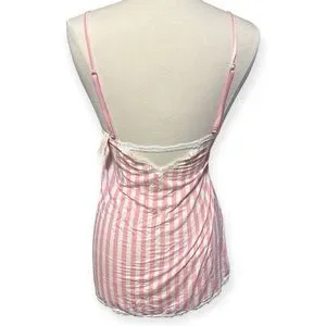 Victoria’s Secret NWT Pink White Lace Striped Chemise Slip Nightie Size Small