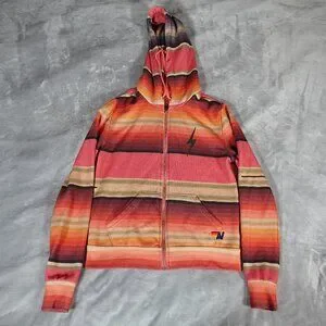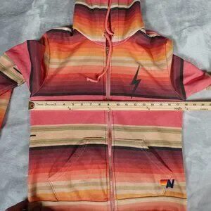 Aviator Nation Serape Bolt Striped Hoodie Womens XS Made In USA Faded Multicolor