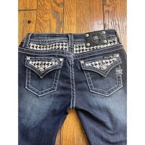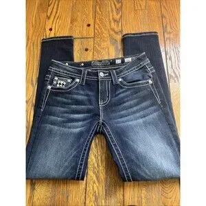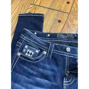 EUC Miss Me Mid-Rise Skinny Embellished Flap Pockets SZ 27x31 Jeans Dark Wash