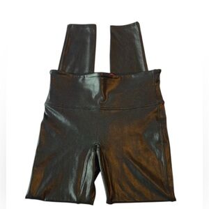 SPANX Faux Leather Shiny Leggings Black Women's Size Small EUC