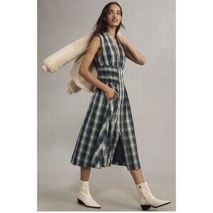 Anthropologie Tommie Cap Sleeve Smocked Front Zip Dress. Sz PXS Blue NWT